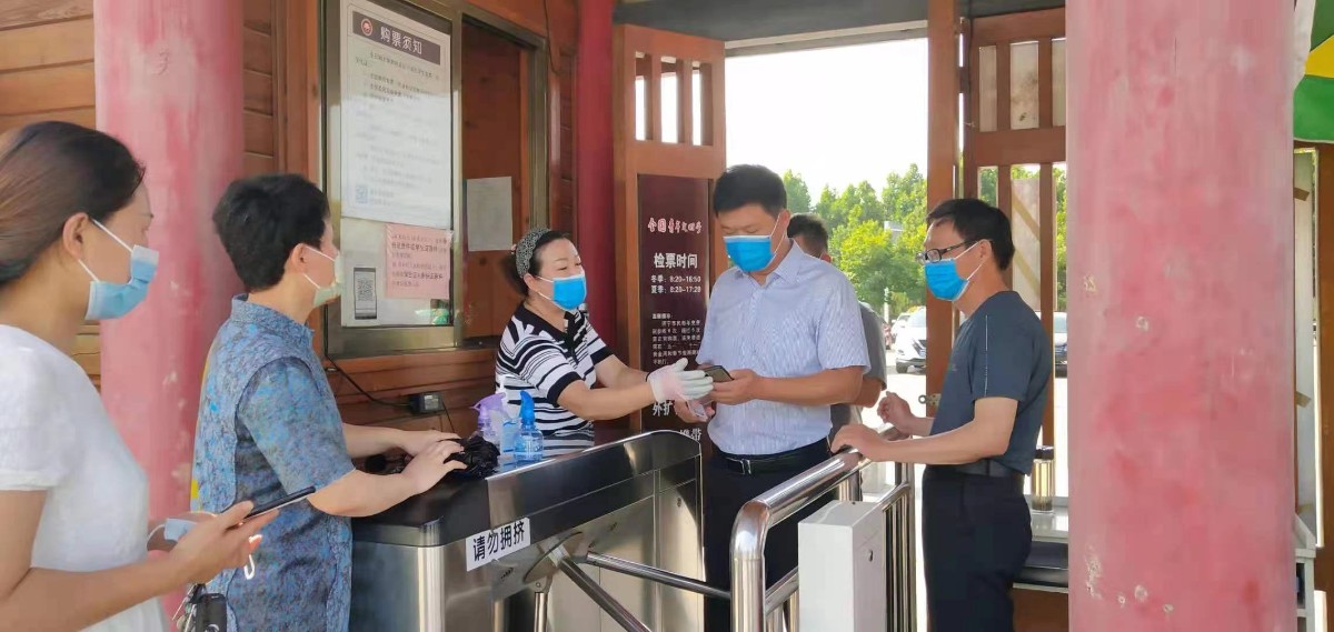各景區(qū)、飯店等要嚴格執(zhí)行憑健康綠碼、憑身份證件、測量體溫,佩戴口罩購票和參觀等疫情防控措施。加強景區(qū)入口體溫排查,對南京、張家界、鄭州等重點地區(qū)來人,發(fā)現(xiàn)紅碼、黃碼人員要第一時間向當?shù)丶部貦C構報告并第一時間妥善處置。