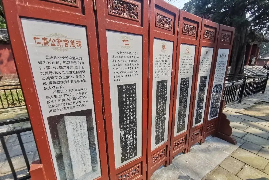 孟廟不僅以古老的建筑著稱于世,保存有歷代碑刻及漢畫像石,另有古樹蒼郁,蔥蘢茂密,堪稱奇觀。在孟廟零距離接觸優(yōu)秀傳統(tǒng)文化,接受仁政民本、家風(fēng)家教、仁廉公勤等孟子政德思想教育的洗禮,感受到優(yōu)秀傳統(tǒng)文化的博大精深。