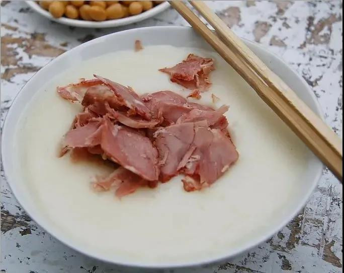 曲阜白粥采用優(yōu)質(zhì)的大豆和小米經(jīng)過(guò)浸泡、磨漿然后按一定的比例入鍋,用慢火熬制而成。整個(gè)過(guò)程不能加一點(diǎn)面粉。粥泡羊肉就是在白粥的基礎(chǔ)上加上煮熟晾涼的羊肉切片,把羊肉灑在熱騰騰的白粥上面,或泡在粥里,粥和羊肉一同入口,粥里滲進(jìn)了肉的美味,羊肉里帶著米粥的香氣,竟然一絲一毫都嘗不出羊肉的那種膻味了,兩者結(jié)合真是相得益彰。
